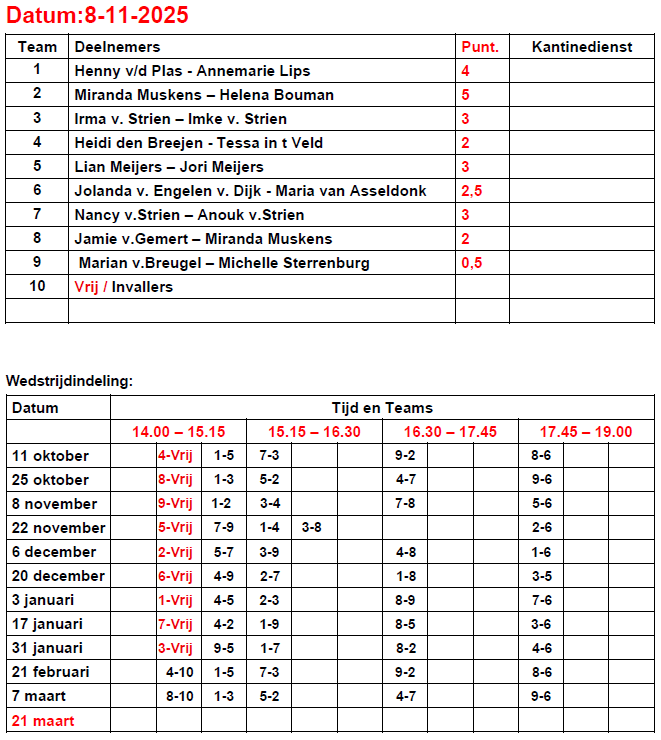 TV Groot Zuideveld – Dames Dubbel 7-8