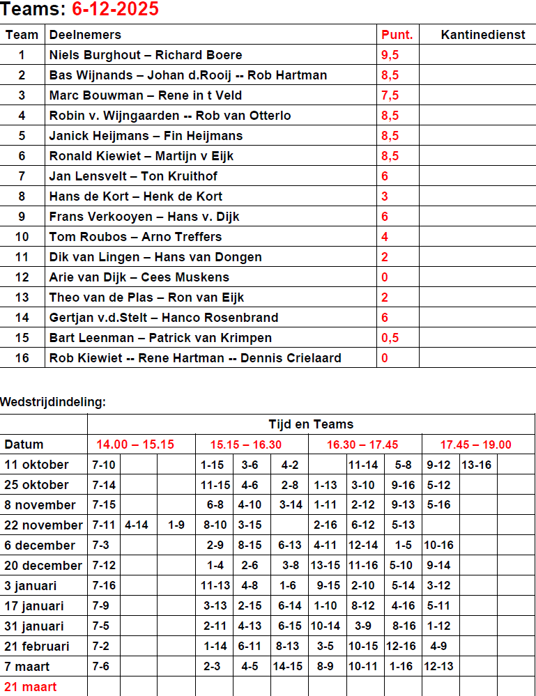 Kantinedienst Wintercompetitie 2025-2026